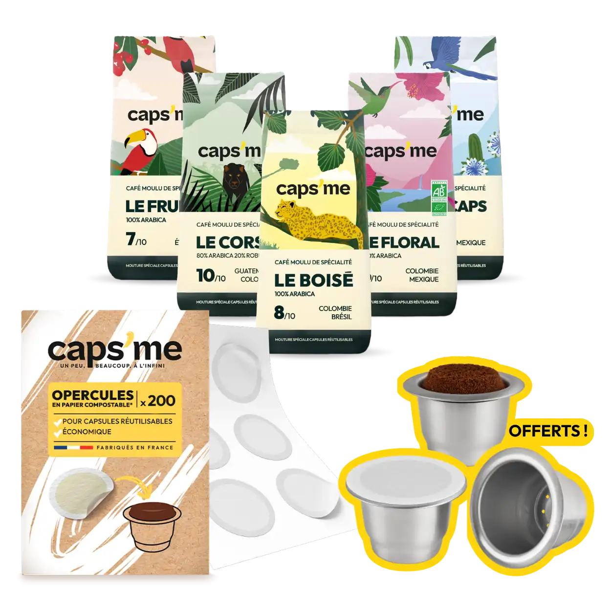 Pourquoi pas des opercules en inox réutilisables ? Nous avons fait ce choix délibérément : les couvercles en métal ne garantissent ni la mousse ni une bonne extraction. Chez Caps'me, votre plaisir et la qualité du café sont prioritaires !