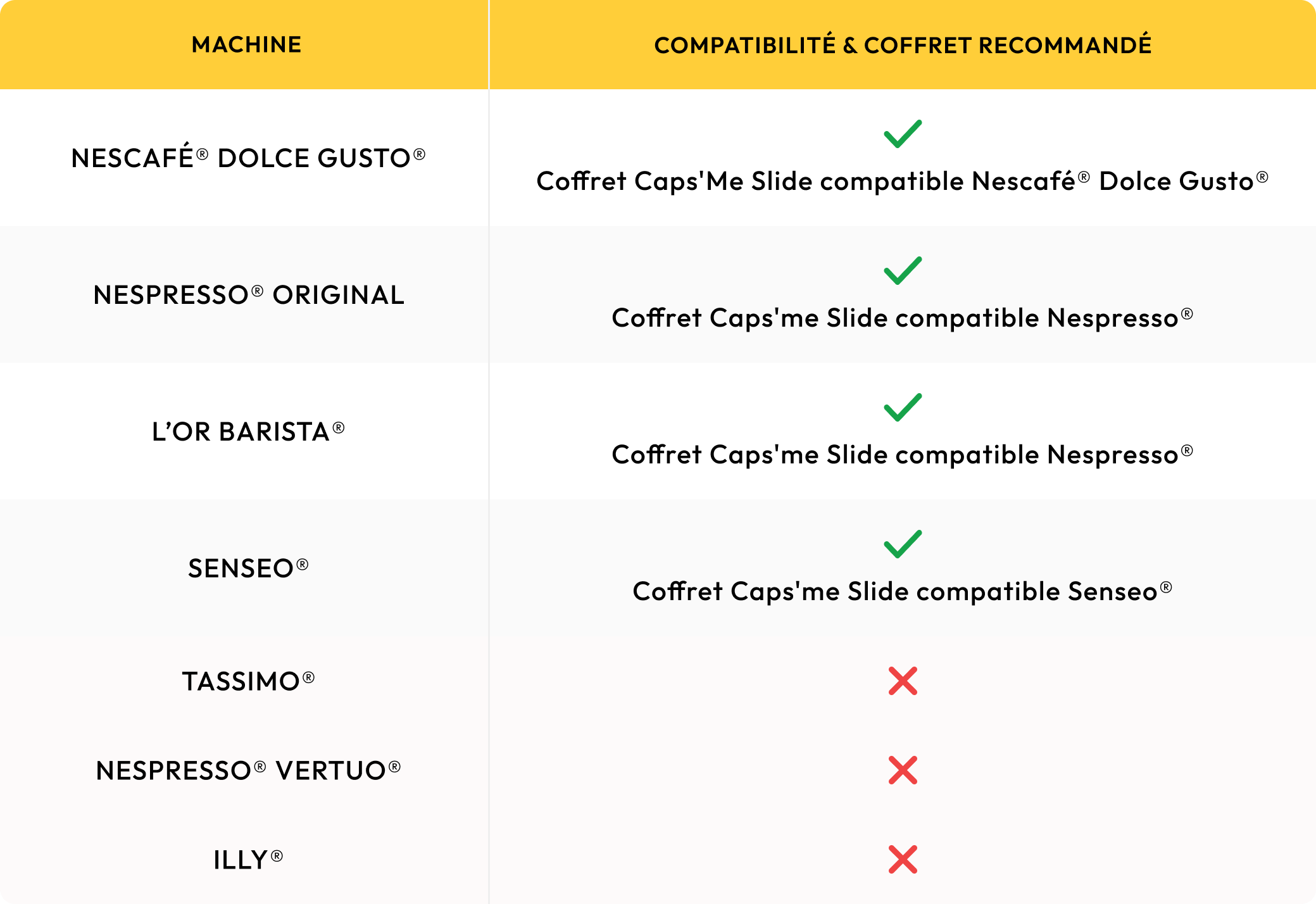 Découvrez votre coffret Caps’Me compatible avec les machines Nespresso®*, Senseo®* ou Nescafé® Dolce Gusto®*
